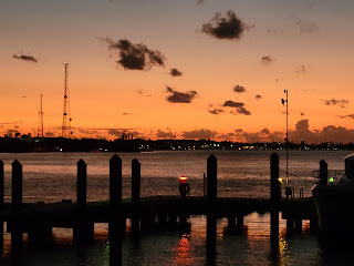 Just as Anette said she wanted to go in the hot tub, Clark texted me to say he was ready to take the dinghy out for a trip to Faro Blanco. He had the dinghy down as part of his "spruce up Sunset Delight" project. As long as it was down, he decided to take advantage and go visiting. I said farewell to Anette and scurried back to the boat as quickly as I could to jump in the dinghy for a ride to more socializing.